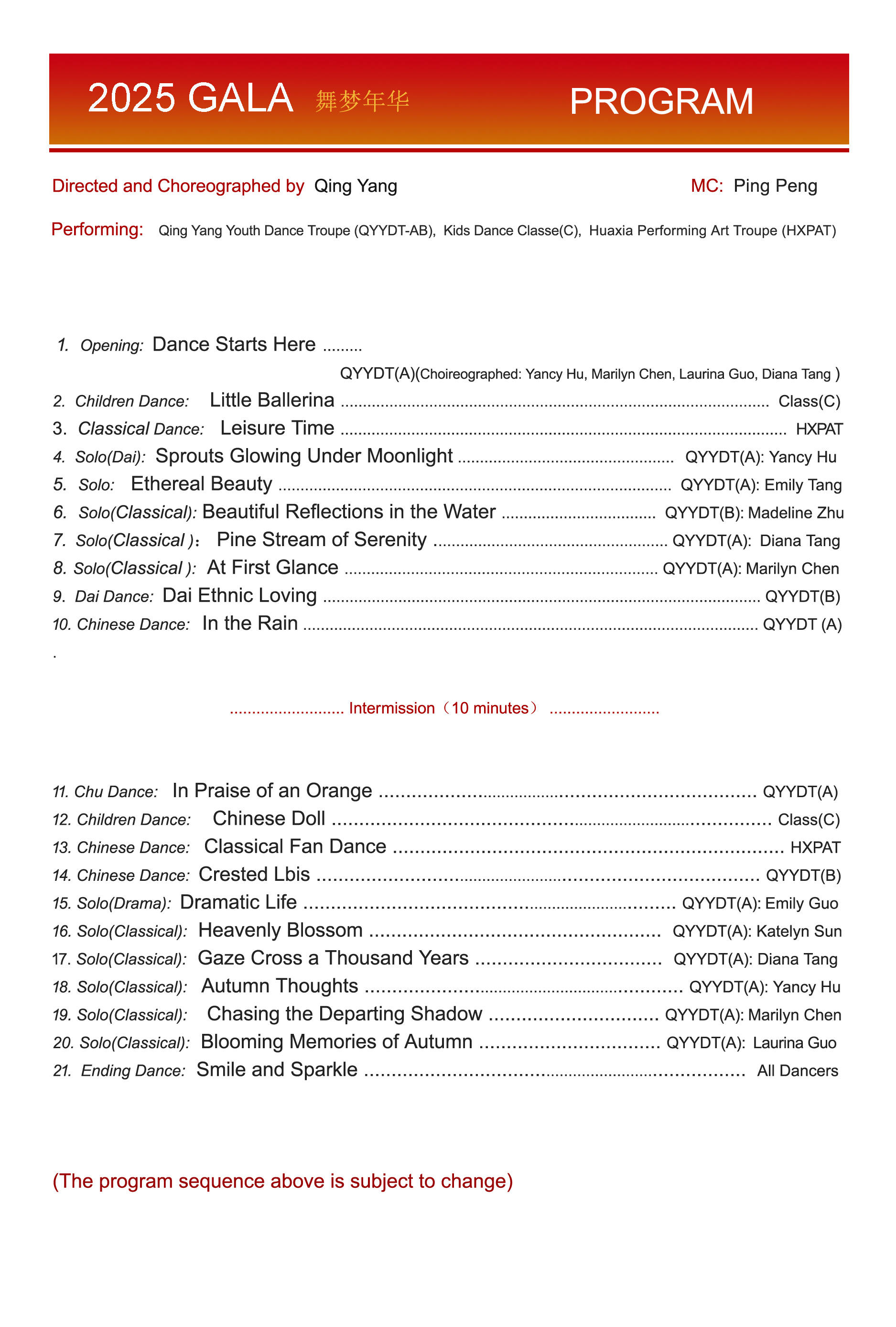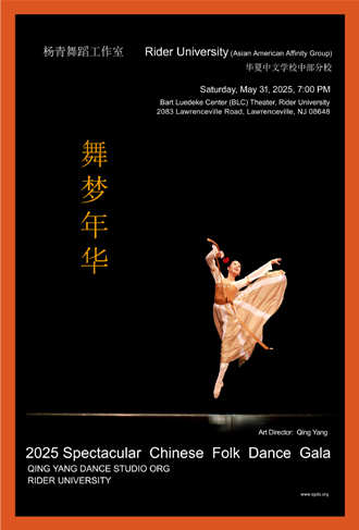 新泽西杨青舞蹈艺术团,Rider University, 华夏中文学校(中部分校)联合举办 第九届中国民族舞蹈专场:《舞梦年华》 May 31, 2025, Bart Luedeke Center Theater, Rider University, New Jersey