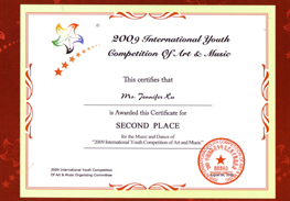 费城大赛独蹈奖获第一名(The 1st place Award). 中国民族独舞《秀色》。