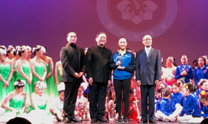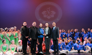 中国民族舞蹈奠基人潘志涛教授以及胡二冬、张大伟教授为Annie Yao颁奖 |