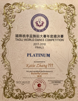 Zhang 民族舞独舞《咏荷》(Lotus)获铂金奖(Platinum)