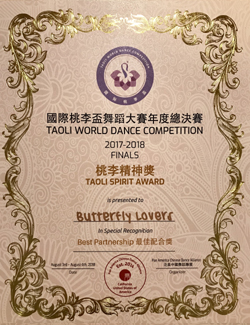 获2018国际桃李杯华盛顿赛区 “十佳铂金”、“评委特别”和“中西合壁”三项奖。